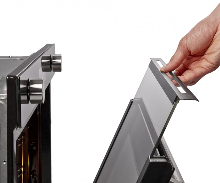 Не только духовка, противень и решетка подвергаются в процессе готовки воздействию копоти и жира, но и сама дверца. Поэтому, чтобы ее можно было со всех сторон легко отмыть, она снимается. Конструктивно сделать это относительно просто, а при монтаже обратно главное попасть в технологические проемы или, проще говоря, пазы. И все же до мытья всей дверцы дело может так и не дойти. А вот протирать стекло изнутри следует часто. Сделать это будет довольно легко – практически во всех плитах и духовых шкафах последнего поколения внутреннее стекло демонтируется без особых усилий. А далее «все в Ваших руках» – его можно замочить в воде, промыть в специальном растворе или доверить это дело посудомоечной машине – стекло закаленное и не пострадает. Позитивного Вам настроя и удачных покупок!
